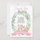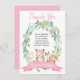 Söka efter en themed flickababy shower för söt skogsmark tacka dig att card för dina gäster? Denna vattenfärgdesign presenterar en lövverkkran, banret och tre gulliga skogsmarkdjur. En kanin, en björn och en räv. Denna skogsmarkbaby shower tackar dig att card för en flicka är klar att vara personligen. All text är redigerbar, så den kan också användas för andra tillfällen.