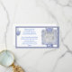Kort för foto för tack för blåttcandystriperam från pojke. Designen presenterar blått och en vit candystriped photoframe med lite en princekrona i blått och vit. En kärlekhjärta med ord "bebis" som hänger från ett ginghamblått- och vitband. Ord "kärlek" är förlagt längst ner av ramen i träbokstäver i blått och vit. Den gulliga versen till något att säga tackar lite dig för gåvor som överförs till bebiset efter en baby shower, en christening eller en födelsedag!