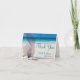 Kort för tack för bröllop för snäckskaldestinationsstrand med en sandigt strand och hav i bakgrunden. Tillfoga bruden, och brudgum namn och bröllop daterar. Insidan är tom att skriva ditt tackar dig.