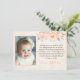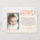 Vintage-inspirerad tackar dig att card med persikapioner för att tacka gäster för kommande till din liten flicka dop. Uttrycka är ", även om för mycket litet att tala mitt, varar besvärad…", dikt.