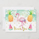 Denna gulliga tropiska vattenfärgfödelsedag tackar dig att card särdrag en rosa flamingo, någon frukt och lövverk. Designen inkluderar också något fauxguld pricker och text. Ditt meddelande visas på baksidaen av kortet. Är den 1st födelsedaginbjudan för den liknande designen, favörklistermärken och födelsedagsfestvälkomnandeaffischen också tillgängliga på lagret. Denna tropiska flamingo vattenfärg somfödelsedagen tackar dig att card, är klar att personifieras och ett underbart långt för att tacka din liten flicka födelsedagsfestgäster.