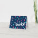 En modern triangelkonfetti planlägger i rosor, vit och aqua över en marinblå bakgrund. Läser "tack" i en modern räcka-skriftlig stilsort. Roligt som är färgrik, snyggt - perfekt! Bakgrundsfärgen kan skräddarsy till någon färg som du skulle något liknande. See shoppar koordinerande objekt i vårt!