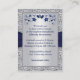 Denna elegant och romantiska marinblått och silver grått blommigt-mottagningskort har ett tryckt band och ett par tryckt diamantjuveler och FAUX-simulerade glitter-gått med hjärtbroschyr på den med en gräns av FAUX silver grått-folie som matchar den bröllopsinbjudning som visas nedan. Du kan också anpassa det till ett riktningskort, ett mottagningskort, ett presentkort, ett webbplatskort för bröllop, ett välvilligt eller välgörenhetskort eller ett allmänt informationskort genom att ändra texten i enlighet med detta. Om du behöver ett större kort, eller om det finns några andra matchande objekt som du behöver, skicka e-post till din förfrågan till niteowlstudio@gmail.com.