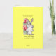 En tecknadkaninkanin och några nätt vattenfärgtulpan på en ljus gul solig bakgrundsnågot att säga: "Är du min bunshine.", Insida läser: "Glad påsk!",