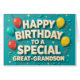 Fira din underbara barnsons stora dag med det här vackra födelsedagskortet med färgstarka ballonger, konfetti, strömmare och en glad teal bakgrund. Den lekande designen är perfekt för pojkar i alla åldrar - oavsett om han blir 5 eller 25. Anpassa ditt meddelande om du vill lägga till en hjärtslitad anteckning från hans "Underbara morföräldrar", ett roligt minne eller till och med ett foto till ett anpassningsbar-kort som han kommer att kärlek. Det är en roligt och ett festligt sätt att tala om för honom hur speciell han är!