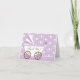 För vintagebarnvagnen för trendiget och för snyggten är den bruna uppsättningen för tackkortet på en blek purpurfärgad bakgrund det perfekta fulländande handlag för din baby shower. Matcha baby showerinbjudningar, är portofrimärken & baby showerklistermärkear tillgängliga i vårt shoppar @ www.celebrateitinvites.com. ©Blackleaf designer