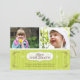 Detta kort för hälsningen för limefruktgröntlägenheten är säkert att stå ut bland andra helgdaghälsningar. Ljusa chartreuse randiga servar för en bakgrund att markera en dekorativ dekorativ panel som innehåller glad helgmeddelandet som betonas med calligraphic prydnadar. Snöflingor sitter förutom panelen med lösa tolkningar av järnekportionen som tränga någon inslag. Tillfoga två av dina egna foto över och skräddarsy den nedanföra texten. Tillgängligt i omväxlande färger med att matcha produkter.