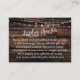 Om du är värd för en avslappnad eller en visning utan presentskabb som kallas för "rustik" kan det här unika kortet vara ditt val. Med hjälp av ett noggrant, fetstilt skript skapat jag ett typografiskt rubrikgrafik som läser "visning dusch" på informationssidan och "to" och "from" för presentsidan på märkrn. Mallen fält har upprättats för att ge gästerna instruktioner om att inte fylla i sin present. Var vänlig och ändra ordalydelsen på det sätt du vill. Jag använde en modern sans-serif för den här kopian. Det finns många populära alternativ till denna text, om ni vill ha en ändring. Bakgrunden täcktes av ett foto av rik mörk brun trä med grovt struktur. Grund i den här bilden maskerades delvis av en suddig mörk lagrar för att hjälpa ord att gå ljusare fram. Du kan ta bort lagrar om du vill. Överst på båda sidor har jag lagt till en grafisk bild av mousserande ljus. Dessa är lätta att ta bort om din designkänsla inte kräver det.