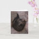 Ett tomt hälsningkort som presenterar ett tryck av ett original, fotograferar taget av Kelly W. Patterson av en kattunge som sovar på en soffa i ett contorted, yoga-något liknande poserar. Denna gulliga beast är lite säker att skapa en andlig mood för avslappnande annons som ska ljusnar någon dagen