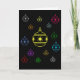 Fjorton runda världsdekorationer med centrala band som visar stjärnsprängningar finns i olika storlekar och täcker detta kort med en svart bakgrund. På insidan kan du anpassa texten som lyder "Glad helg - Att önska dig lycka till i det nya året!" I hörnet på den övre högerna finns tre andra prydnadsformer i blått, grönt och rött.