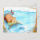 Handrawn och målat med vattenfärger, en söt ko och rån som glider på ett fryst sjö.