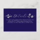 Kort med detaljer om kungligt blå blomsterbröllop