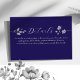 Tillägg elegans och klarhet till din bröllopssvit med detta kungligt blå detaljer-kort, prytt med mjuka silver blomsterdekorationer och graciös skrift. Perfekt för att dela din RSVP-information, boende, vägbeskrivningar eller webbplats med gäster i en förfinad och sammanhängande stil.