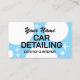 Bilden som beskriver visitkortsmallen. Personlig företagskort med tvålbubblor och gnistor. Blått eller anpassningsbar färg. Besökskort för professionell för städning av fordon, tvättande av bilar, vaxning, automatisk reparation med mera. Kan även användas för andra städning tjänster, deltid eller fullt.