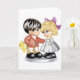 Kort med Pojke som Ger en Flicka Blommor