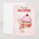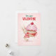 En bedårande kanin i en rödrandig skjorta slingrar sina tassar runt en jättecupcake med rosa glasyr, strössel och en körsbär. Perfekt för födelsedag, fest eller vårtema.