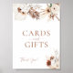 Vår elegant Cards and Gifts Boho-skylt är perfektens sätt att meddela din bröllopsdag till dina gäster. Varje tecken har invecklad blommigt och vacker typografi i neutralt färg, bland annat terracotta, beige och ärliga toner. De kommer säkert att imponera på dina gäster och ange tonen för din speciella dag. Min samling i bröllop i en boho-design med vattenfärgade blommigtar, pampas och vackra toner, innehåller allt du behöver för att verkligen göra din speciella dag oförglömlig. Samling: https://www.zazzle.com/collections/watercolor_boho_pampas_wedding_collection-119346973241911782