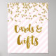 Kort och gåvor med bröllop-tecken poster i ljuspastellens rosa och vit rand mönster med guld konetti och handskrivna stil-bokstäver.
