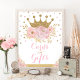 Den här konstruktionen har ett glatt royal krona i Faux guld glitter, som har dekorerats med peonier med mjuka vattenfärger och konfektsprinkler. Anpassa tecknet med valfri ordalydelse!