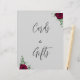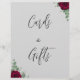 Kort- och presentkortssignalen från bröllop från Twin Spirit Design är ett perfekt tillägg till alla bröllop-ceremonier. Utformningen har en grått-bakgrund, en grönt-blad och röda blommor.
