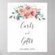 "Kort och gåvor" elegant blommigt bröllop tecken. Innehåller handskrift av stil-kalligrafteckensnitt och vattenfärg ro blommigt arrangemang.