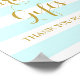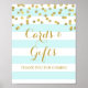 Kort och present skylt affisch för baby shower, bröllop eller brud shower, i ljust babyblått och vitt randigt mönster med guld glitter effekt konfetti, observera att guld är endast fotografisk effekt. Perfekt för en baby shower, bröllop eller brud shower.