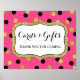 Kort och present skylt affisch för baby shower, bröllopsfest eller bröllop i fuchsia varmt rosa med guld och svarta prickar mönster, observera att guld är endast en fotografisk effekt.