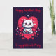 Kort till flickvän på Alla hjärtans dag med en söt katt och många röda hjärtan.
