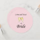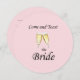 Kom och skål på Bride med champagneglasögon och all information för ditt evenemang på baksidan av inbjudan till söt rosa.