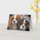 Två Cavalier Kung Charles spaneler tittar in i kameran med ett ensamt utseende och meddelande om "Saknat ett" på detta av ett slag som saknar ett hälsningskort.