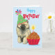 Lycklig hälsning med den här söta designen med en söt, party-hatt-beklädd Keeshond-valp med en cupkaka. Det går lätt att ändra texten. Klicka bara på knappen Anpassa.