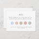 Den här moderna pastellklippet visar hur koden infogas, innehåller fem redigerbara alternativ för färg mot en vit bakgrund och alternativet att inkludera en bröllop webbplats adress. Både baksidan och framsidan av kortet har en vit bakgrund. Anpassa för att göra det till din egen. Fullt finns här: https://www.zazzle.com/collections/blue_hydrangea_wedding-119375826724298815