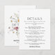 Ett snyggt designat detaljförslutningskort med delikata vattenfärgblommor i mjuka pastelltoner. Elegantens typografi och minimalistisk utformning skapar en sofistikerad och romantisk känsla, perfekt för bröllop, årsdagar och speciellt firande. Fullständigt anpassade med namn, datum och personuppgifter för att ge gästerna viktig information om evenemanget.
