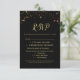 Denna OSA kort är särskilt designad som en del av vår Shimmering Sparkles bröllop-svit. Ge är dina gäster ett enkelt sätt att ta emot eller avböja inbjudan och tala om hur många gäster som kommer att närvara. Utformningen har en elegant som ändå är exakt utformad för en guld- och rosa-stjärna med guld-text över en svart bakgrund.