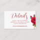 Små kort för bröllop-information/webbplats för att skicka gäster till bröllop webbplats för mer information. Smalan tryckte stil i rött på vitt. Reverse är helröd. Om du ändrar storleka på detta kort kan det ersätta ordalydelsen så att den stämmer överens.