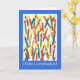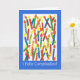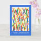 Ett kort med ljusa färgader, med ljus och Grattis på födelsedagen på spanska, från en handmålad papper kollage av Judy Adamson. Insidan lämnas tom för ditt eget meddelande.