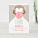 Elegant grafik brud med slöja som innehåller ett kort av rosa av av koral orange, stilized ro blommigt-möhippa-minnen. Redigera det här söt-kortet med hedersbridens namn. Idealiskt till ge för möhippa gäster för att avslöja bruden och deras berättelser och minnen från den blivande bruden. Unik design och grafik efter www.mylittleedenweddings.com