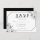 Bygg upp lockelsen med detta moody gotiska bröllop OSA-kort, perfekt för Halloween bröllop. Denna moderna, elegant-design kombinerar en bioestetisk mörk med en moody, spooky vibe, som fångar kärnan av ett firande i oktober. Den här inbjudan, som är imponerande förtjust i motiven för fladdermus och spindelnät, visar vid sidan av den ömtåliga blommigten inslag en slående svart-vit palett för färg. Ange tonen för din speciella dag med en unik blandning av hemlig skönhet och elegans.