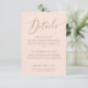 Kort för elegant och minsta invigningskort för bröllopsinbjudan med modern manustext överst på rosa. Anpassa det här inbjudan genom att lägga till information på bröllop, inklusive mottagning, logi och webbplats. Perfekt för alla säsonger.