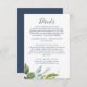 Kortet för gröna detaljer i sommartid är perfekt för en elegant mitt i sommaren bröllop. Den botaniska designen har en lush arrangemang av färgade löv av eukalyptus, grey och grönt med subtila sprit av blommar för rosa.
