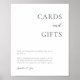 Uttryck din tacksamhet med detta eleganta "Kort och presenter"-skylt, perfekt för bröllop eller speciella firanden. Med sin minimalistiska design och raffinerade typografi är denna utskrivbara eller tryckta skylt ett genomtänkt sätt att guida dina gäster och tacka dem för deras kärlek och generositet. Anpassa den för att matcha din events stil och skapa ett vackert tillägg till ditt presentbord.