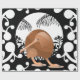 En vektorillustration av en Kiwi-fågel. Fågeln är inramad av ett fullt, eftersom Kiwi är nattlig. Bakgrunden är svart och vit Maori, traditionell koru-design. Ett nyzeeländskt fågelexempel.