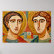 Denna poster av Saints Cosmas och Damian har en enastående mosaic-stil-bild av tvillingbröderna och tidigt kristna martyrer. De är kända som läkare som läkt utan betalning, de firas för sin tro och tjänst. Denna teckning är ett meningsfullt tillskott till alla hem, församlingar eller klassrum, inspirerande välgörenhet och mod.