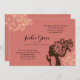 En vacker design för att meddela att du har tagit examen från en kosmetologiskola eller skönhetsskola. Den laxrosa bakgrunden har graciösa blommor och slingor och en siluett av en flicka med blommor i håret.