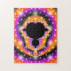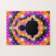Detta pussel presenterar en fractalkonstMandelbrot design med svart, lilor, orangen och vitfärger.