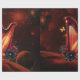 Kosmisk melodi, harpens magi. Hampan utstrålar värme och lyx, dess gyllene strängar och ram som på ett harmoniskt sätt kontrasterar med de svarta och orange blommor som förskönar den. Dessa blommor är vibrerande och mycket detaljerade och ger instrumentet en naturlig skönhet och en aning magi. Bakgrunden transporterar visningsprogrammet till en utrymning med hjälp av meserier. Den består av djupblåa och lila nebulusmoln, som är sammanflätade med dubbla stjärnor och skakplaneter av olika storlek och färg.