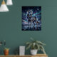 En majestätisk kosmisk varg står stolt på en frusen himmelsrygg, dess kropp formats av lysande nebulosmoln, skimrande stjärnhopar och rymdtexturer. Strålande ögon lyser som avlägsna stjärnor, medan dess päls flödar med subtila stjärnbilder och lysande energi. Uppställd i en surrealistisk kosmisk tundra av isig terräng, avlägsna planeter och auroralysande himmel, fångar detta konstverk anden av ett kraftfullt interstellärt rovdjur. Perfekt för modern väggkonst, science fiction-dekoration och fantasy-fans som söker en djärv, atmosfärisk mittpunkt.