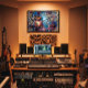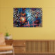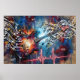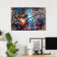 Ljusande elektrisk gitarrkonst omgiven av dansande musiknoter! Abstrakt expressionistisk stil med graffiti och färgglada fläckar. Perfekt för musikaffischer, albumomslag och studiodekor. Ren rockenergi och urban rytm som förvandlar vilket utrymme som helst med passion!