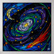 Ett vackert och intrikat glas av nedfläckad med en kosmisk tejp av en snurrande galaxi, stjärnor och en komet. Den tjocka svarta linjer och den glänsande, jeweltonade färg ge är ett klassiskt tidlöst intryck som är perfekt för alla hem- eller rymdentusiaster.
