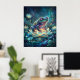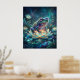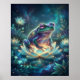 En charmig kosmisk groda sitter på toppen av en lysande lotus, dess släta kropp genomträngd av levande nebulosafärger och mjuka stjärnljusstrukturer. Dess uttrycksfulla lysande ögon ger en lekfull men ändå mystisk närvaro, medan den omgivande kosmiska dammen skimrar med mjuka krusningar och flytande partiklar. Scenen blandar nyckfullhet med lugn och skapar en dekorativ och lugnande atmosfär. Detta förtjusande konstverk är perfekt för presentartiklar, lekfulla interiörer och samlare som älskar söta, fantasifulla och himmelsinspirerade designs.